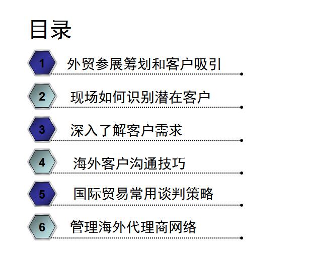 课程主要帮助学员了解完整的销售环节和把握销售的关键点;提高学员分析和识别海外客户的能力;掌握与海外客户沟通和谈判的实用策略;外贸公司业务人员如何应对当前形势